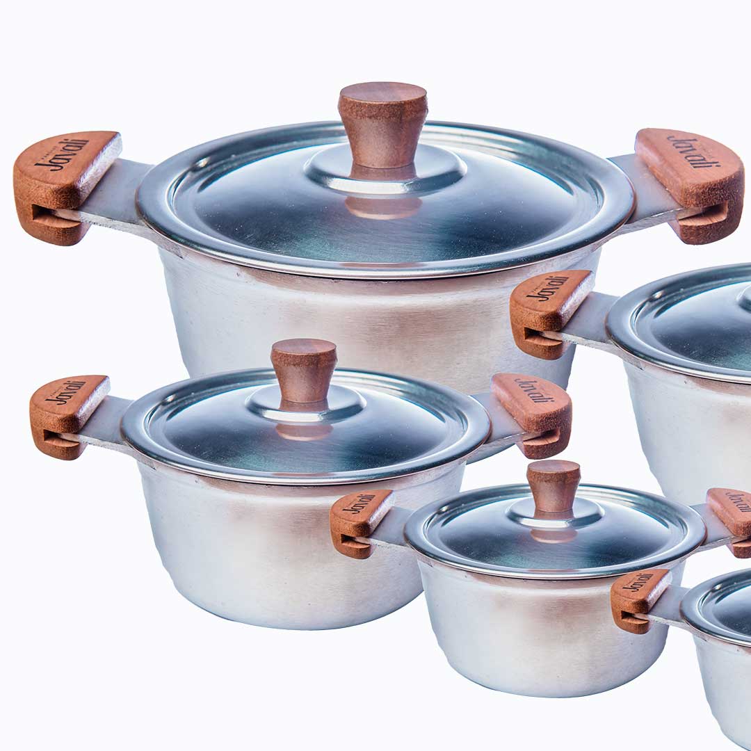 They can be purchased with a light or reinforced aluminum lid, and thinking about your comfort and safety, our pans have wooden handles that heat up less when handling them, or with aluminum handles, your preference.