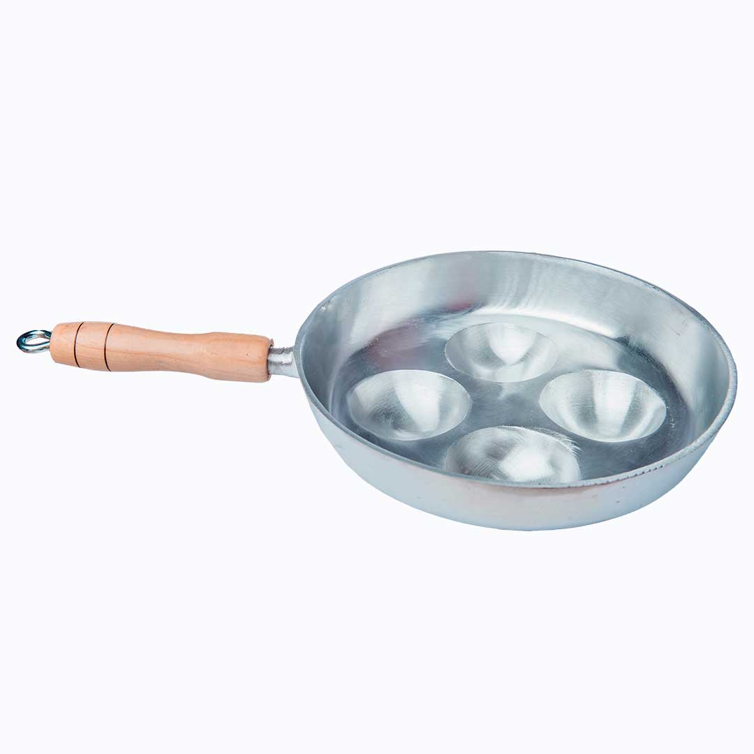 TRADITIONAL POLISHED FRYING PAN FOR 4 EGGS WITH WOOD HANDLE