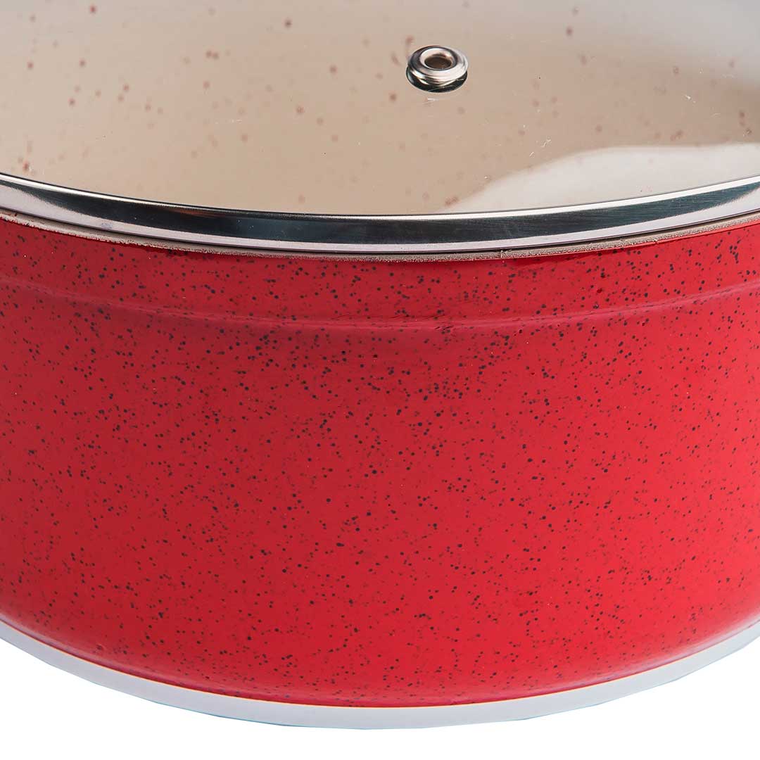 They can be purchased with a tempered glass lid, which facilitates the monitoring of your preparations, without the need to open them frequently, in addition to their stainless steel rim and steam outlet. We also have the option of reinforced aluminum covers.